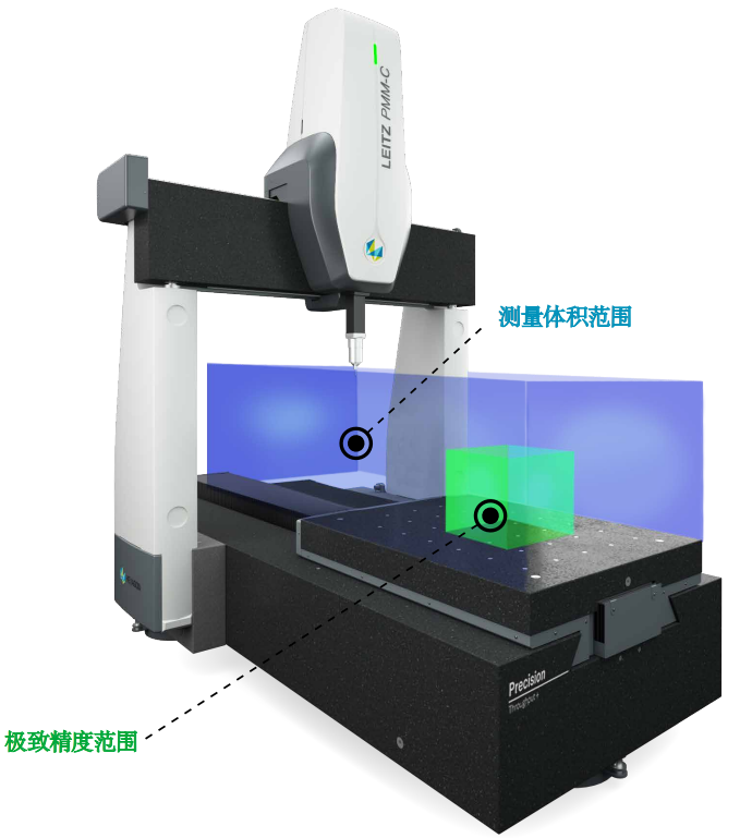 对于中型和大型的 Leitz PMM-C 系列,Accuracy+ 应用解决方案还包括体积测量精度更精确的Sweet Spot功能。针对行程范围内有限区域的较小零件或特征检测时,可实现更加严格的公差以达到极致测量精度。