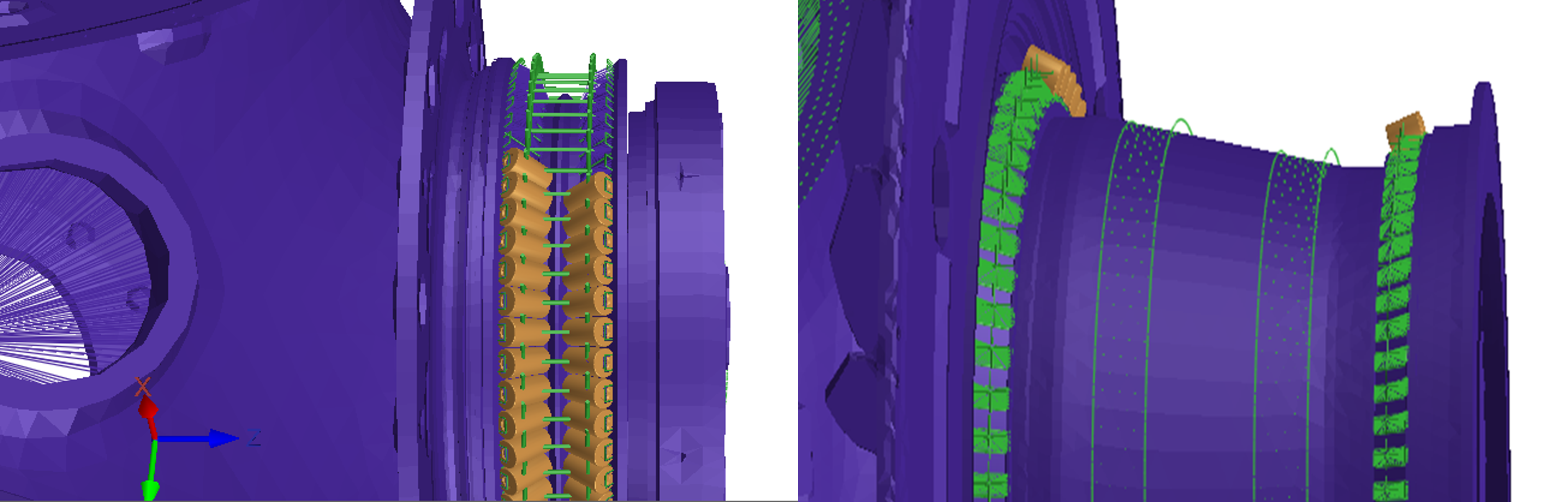 海克斯康拥有专业的滚动轴承设计开发工具,可覆盖轴承设计开发从概念设计到详细设计的完整周期。在传动链设计的早期,通过Romax Concept概念设计工具快速评估传动系统的支承需求,推荐所需的轴承类型,结合系统载荷结果,可在丰富的数据库中进行自动化轴承选型。在传动链详细设计阶段,针对传动系统对支承刚度、轴承应力与寿命的要求,可详细定义轴承的宏观和微观的内部细节参数,结合强大的DOE参数优化功能,用户可以在更短的时间内设计出更加匹配传动性能要求的轴承参数。Romax软件柔性化轴承套圈的功能可以考虑风电大轴承的套圈变形对于内部滚动体载荷及应力分布的影响,从而更精准地预测轴承的应力、油膜及寿命等关键性能指标。对于轴承在运行期间出现的一些故障,通过专业人员的问题调查与仿真分析,可以理解轴承失效的根源,并提出相应的设计变更与优化方案。