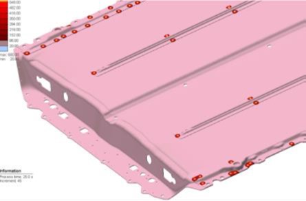 Simufact Welding可实现电池托盘中的激光、电弧、电子束、电阻点焊等焊接工艺过程进行模拟 。