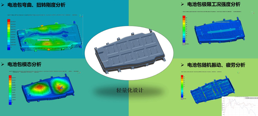 随着环境污染和能源短缺问题的日益严峻,新能源汽车的研发成为汽车行业的发展重心,其中,动力电池包作为其关键技术之一,将直接影响到车辆的续航里程与行驶安全。电池包承受着电池组等模块的质量,因此其刚度、强度与振动疲劳性能必须满足使用要求,才可以保证行驶的安全性,因此,针对动力电池包性能的研究是新能源汽车各项性能的重中之重。电池包作为一个机械-电-热耦合的复杂系统,它的刚度、强度和疲劳特性同时影响着电、热和机械系统的安全与可靠。所以使用CAE技术复现电池使用中的各种极端场景,提前采取措施保证电池的使用安全,然后在保证安全的前提下,并以轻量化手段优化电池包结构,从而帮助企业实现缩短产品开发周期,降低开发费用,提升精益制造。