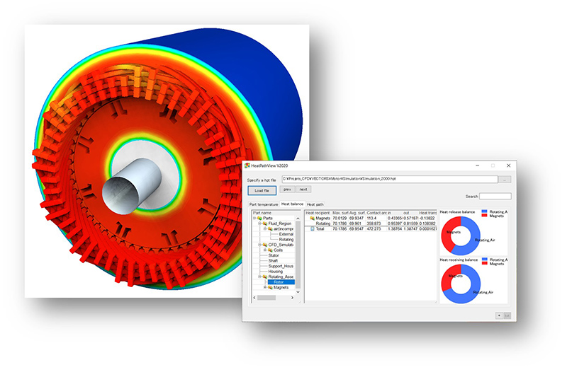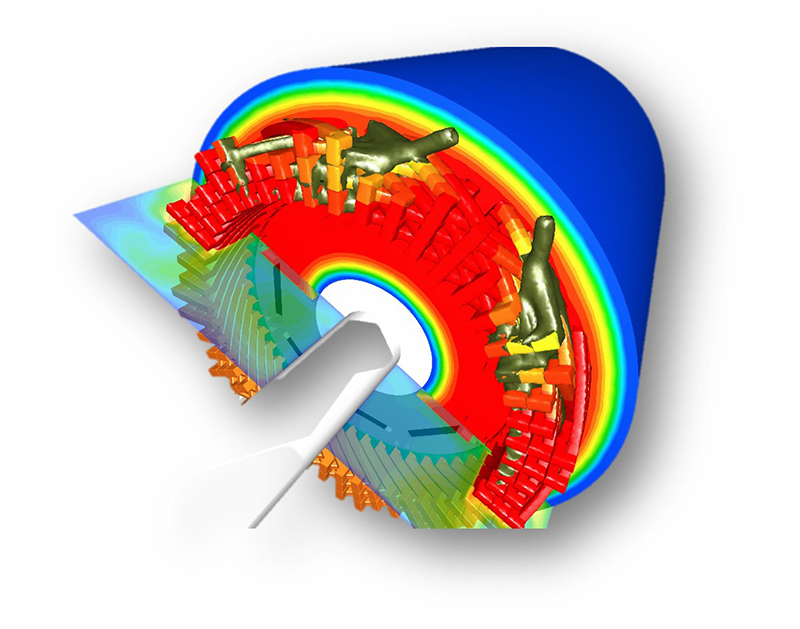 结合cradle cfd的强大前处理,对于复杂模型无需模型修复,快速自动划分网格,可以分析电机运行温度评估。同时cradle cfd与Jmag软件可以无缝耦合,可以把Jmag计算的损耗文件直接读入,并进行热流体仿真。