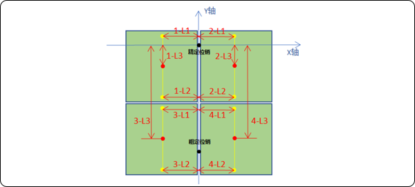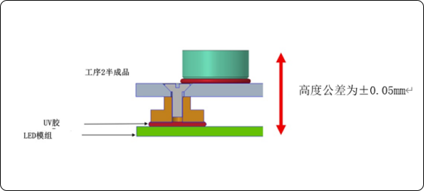 (3)在模组固化工序中,4个模组的中心点的左右及上下的距离公差在+/-0.03mm内。