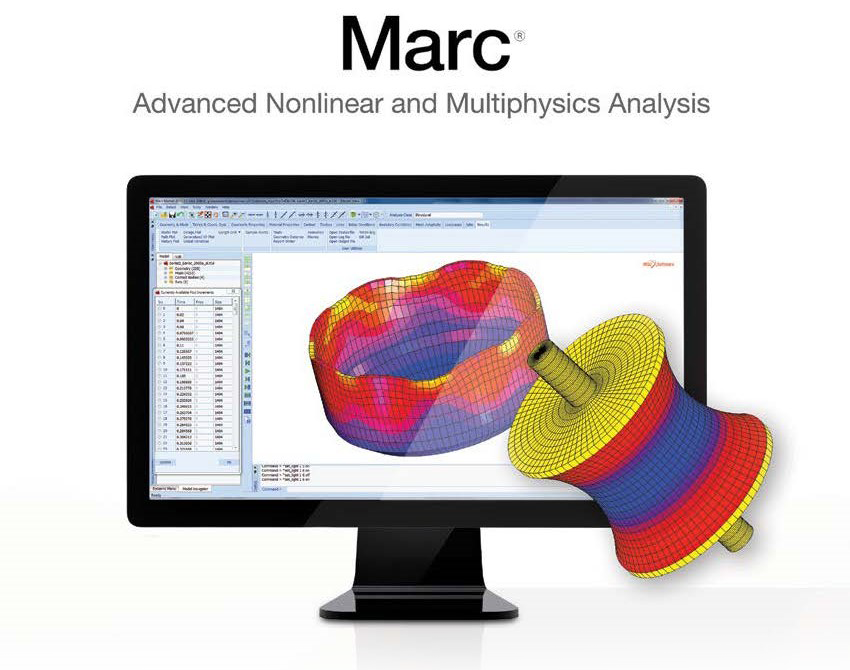 Marc是一款功能强大的通用非线性有限元分析软件, 能够针对广泛的工程设计与制造应用中的静力、动力和多物理场耦合问题进行准确仿真。Marc强大的模拟非线性材料和多变边界条件的能力使它能够帮助用户处理大量的复杂的设计问题。