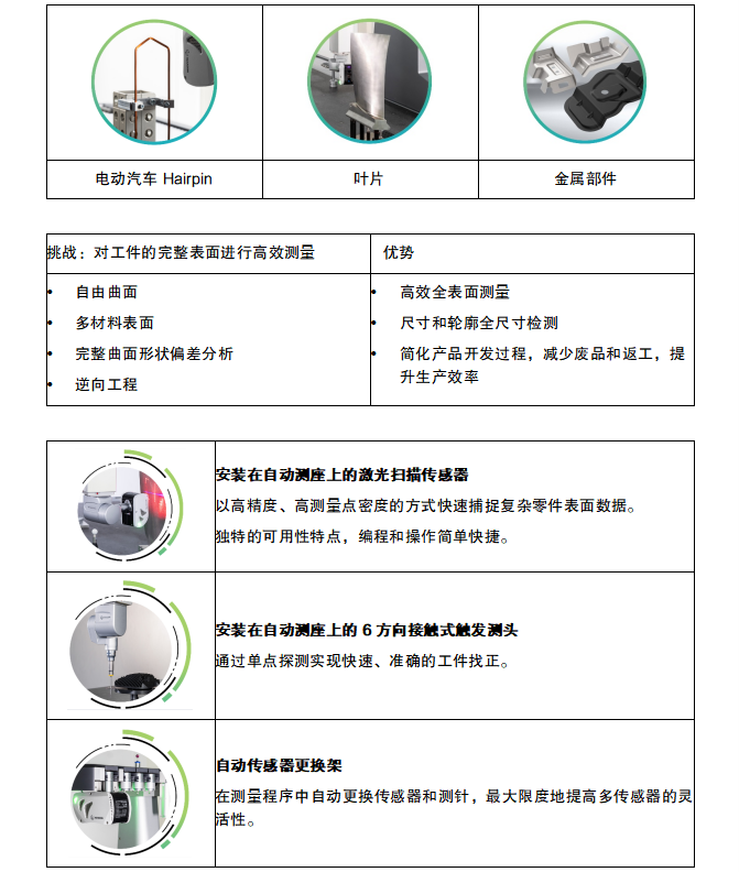 可同时或分别配置触发、扫描、白光、激光、影像多种类型传感器,以应对不同的测量任务,且测量周期内可实现不同传感器间自动切换