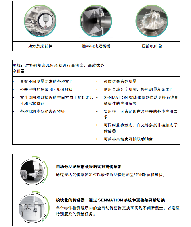 从测针到完整的传感器系统,对于频繁或偶尔的应用变化,海克斯康的解决方案均可实现不间断的测量。SENMATION 将 Leitz Reference Flexibility 三坐标测量机转变为一个多传感器检测设备,能够完成最复杂的测量任务。该系统支 持在同一测量程序中使用多种接触式传感器和光学传感器,确保每个零件特征都使用正确类型的传感器。