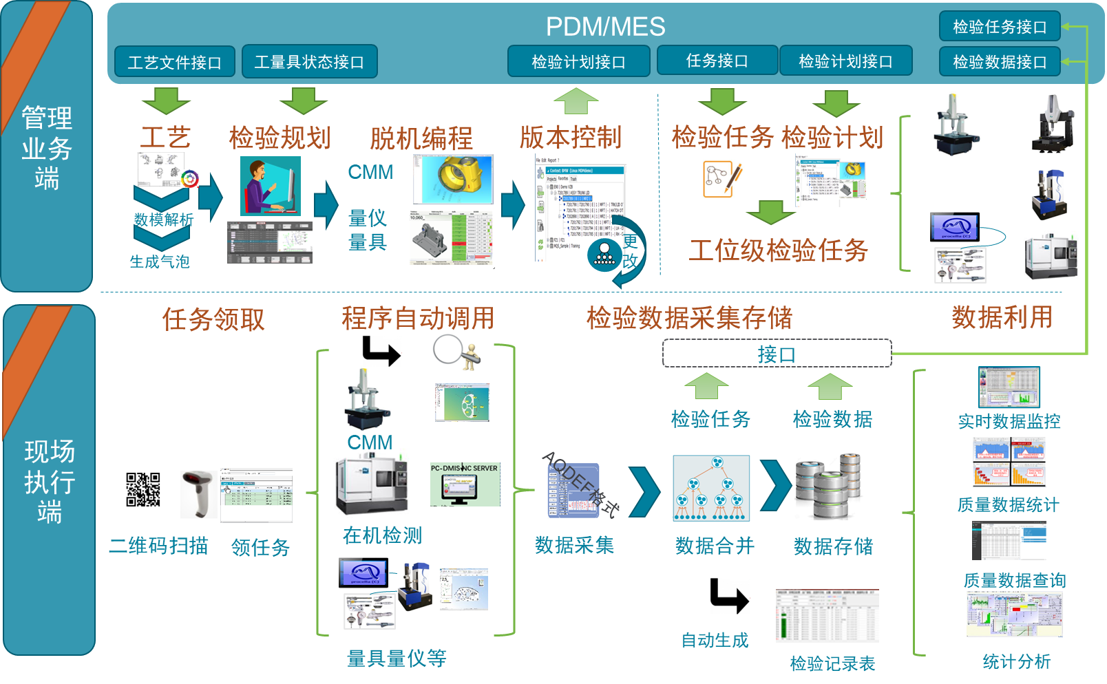 建立统一的数据采集标准格式,从各种传统量检具、数字化检具、自动化检测设备等将各种检测手段、测量设备的数据自动化、便捷化采集,提高检测环节的效能。