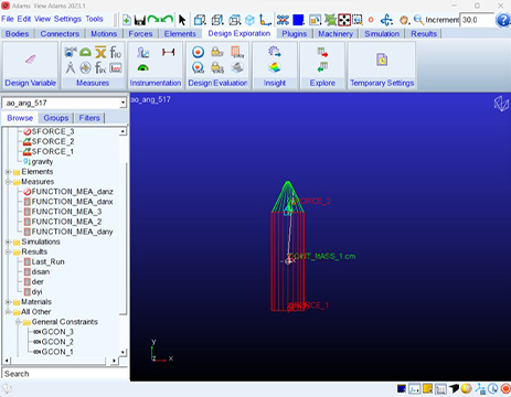 本方案的核心在于自定义约束和AO函数的综合使用,基于创建的虚质量点与飞行器测点,相对飞行器指定的局部坐标系进行各轴角度的测量。