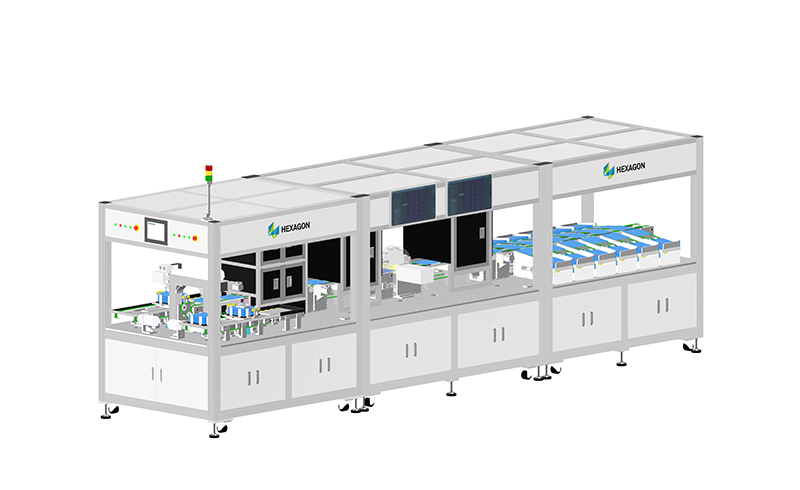 光伏电池片检测专机,可以实现电池片离线或在线检测,一站式满足 EL 或 PL 检测、正反面瑕疵检测和颜色分选要求,并根据瑕疵等级和颜色分类完成光伏电池片的自动分选。实现一次上料多道检测一次分拣,通过 Hexagon 的智能瑕疵检测软件实现瑕疵的自动识别及自动分类,集成度高、自动化能力强。帮助客户完成电池片分选任务,提高检测效率。