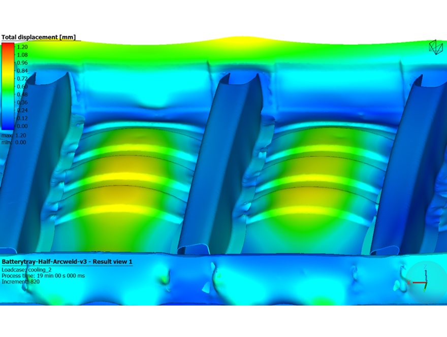 Simufact Welding可实现电池托盘中的激光、电弧、电子束、电阻点焊等焊接工艺过程进行模拟 。