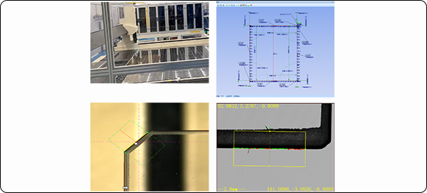 • 外形长宽、四周倒角,平行度、垂直度以及厚度测量。普通影像仪行程受限,2m以上工件无法准确测量或是需要拼接测量。